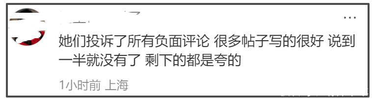 还有不少网友反馈,相关帖子也遭到了投诉,当事人容不得一点儿讨论空间。